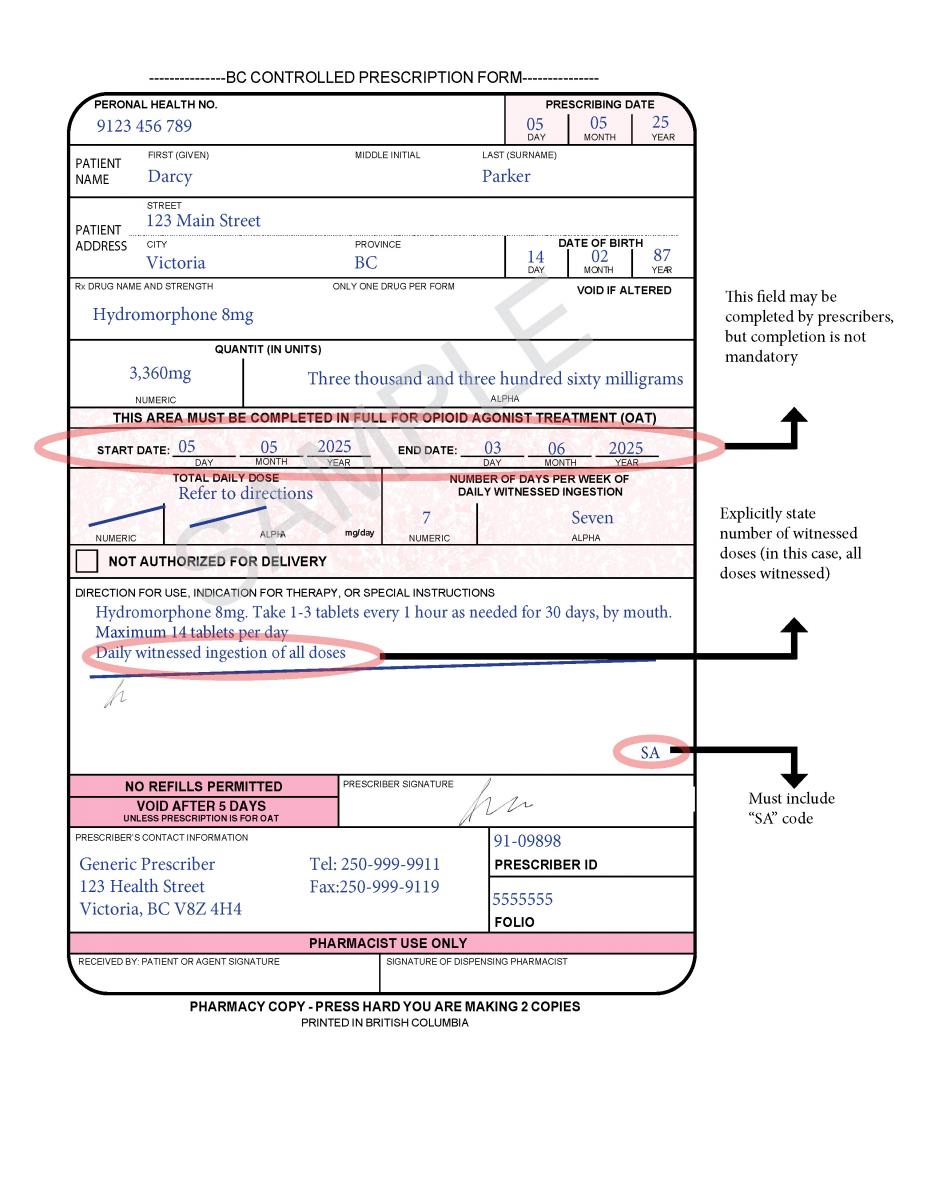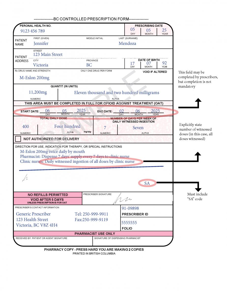 Under section 19(6)(a) of the College of Pharmacists of BC’s Bylaws under the Pharmacy Operations and Drug Scheduling Act, the controlled prescription form must be approved by the Boards of both the College of Pharmacists of BC and the College of Physicians and Surgeons of British Columbia.